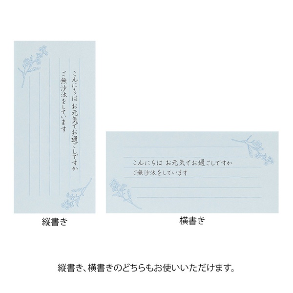 便箋は、花の絵柄と和紙の色を活かした、ゆったりとしたレイアウトで、縦書きでも横書きでも使える両用タイプです。