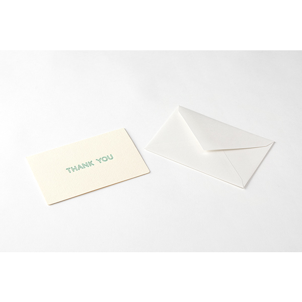ありがとう、という感謝の気持ちを伝えるあたたかいメッセージを、優しく穏やかな印象を与える深い緑色で印刷しました。活版印刷機でやわらかな紙にしっかりと圧をかけて印刷しています。