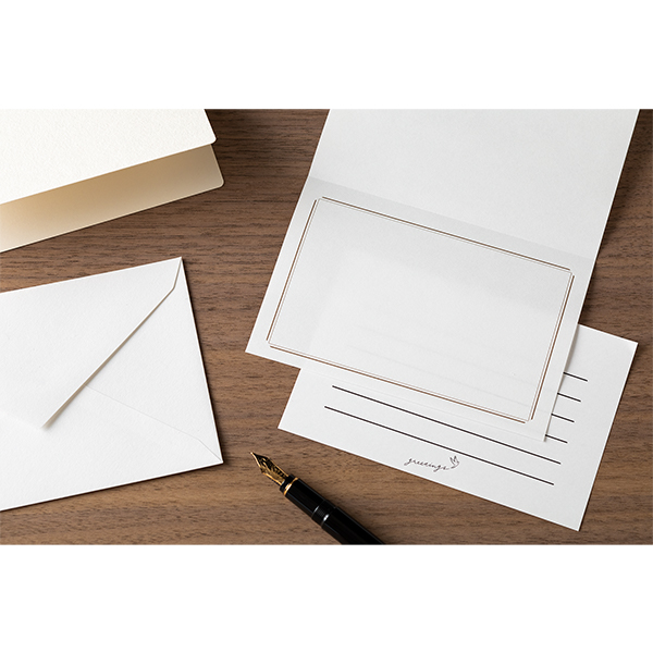 <カード本体> 万年筆○ 水性ペン○ 毛筆/筆ペン△ インクジェット× <中紙> 万年筆○ 水性ペン○ 毛筆/筆ペン○ インクジェット× |