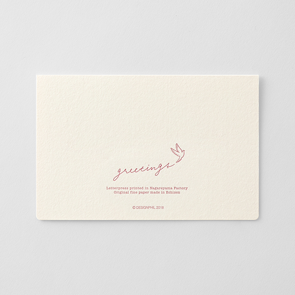 越前で漉いたオリジナルペーパーを使用し、しっかりと押された活版印刷が美しい風合いとぬくもりのあるグリーティングカードです。
