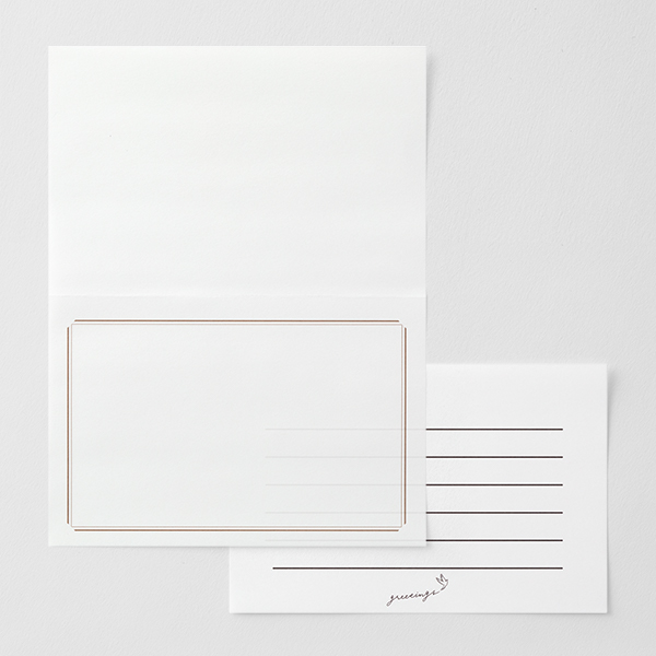 カード/2つ折り状態:H92×W140mm(見開き状態:H184×W140mm) 封筒/H98×W148mm 中紙/2つ折り状態:H90×W136mm(見開き状態:H180×W136mm) ケース/H102×W154×D23mm |