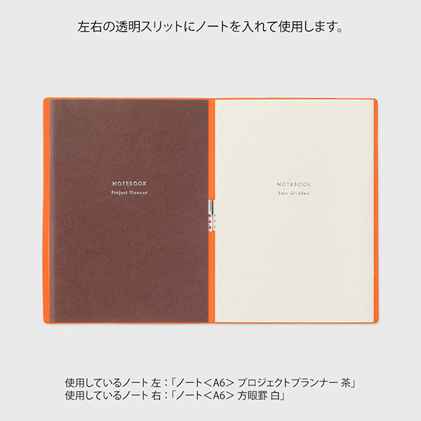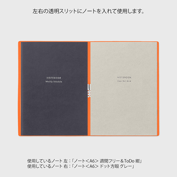 | 備考 | ●こちらの商品には、「リフィルノート<A6>」>>(64ページ、厚み4mm)「リフィルメモパッド<A6>」>>(70ページ、厚み7mm)を入れていただくことをおすすめしております。 ※これより厚いノートを2冊ご利用の際は、入らないことがありますのでご注意ください。 ●ミドリオンラインストア限定商品のため、他店では発売しておりません。 |