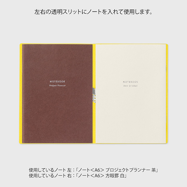 | 備考 | ●こちらの商品には、「リフィルノート<A6>」>>(64ページ、厚み4mm)「リフィルメモパッド<A6>」>>(70ページ、厚み7mm)を入れていただくことをおすすめしております。 ※これより厚いノートを2冊ご利用の際は、入らないことがありますのでご注意ください。 ●ミドリオンラインストア限定商品のため、他店では発売しておりません。 |