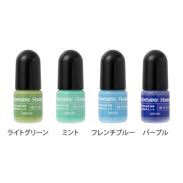 〇この補充インキはミドリの「ペインタブルスタンプ回転印専用」または「日付回転印専用インキパッド」>>に対応しています。他のスタンプには使用しないでください。 〇ご使用中の「ペインタブルスタンプ」でお使いの際は、インキパッドを外した状態で1つの面で最低10回は空押しをして、前のインキが無くなるようにしてください。 〇スタンプのゴム面は非常に繊細なためティッシュなどで拭き取るとゴム面を傷つけることがあるためお避け下さい。スタンプ本体がインキで汚れてしまった場合は、アルコールを含んだウエットティッシュで軽く拭き取ってください。 〇ボトルの蓋を開けると、稀に中の空気と一緒にインキが出てくる事があります。油性インキを使用しているため、衣類などへの付着にはご注意ください。 〇火気の近くや高温になる場所(夏場の車内や直射日光の当たるところ)には置かないでください。 〇スタンプ本体を勢いよく押すとインキが周りにはねてしまう恐れがありますので、ゆっくり押してお楽しみください。 〇スタンプ本体がインキで汚れてしまった場合は、アルコールを含んだウエットティッシュで軽く拭き取ってください。 |