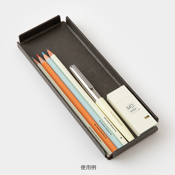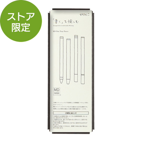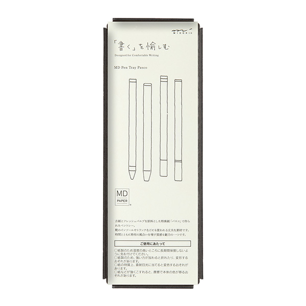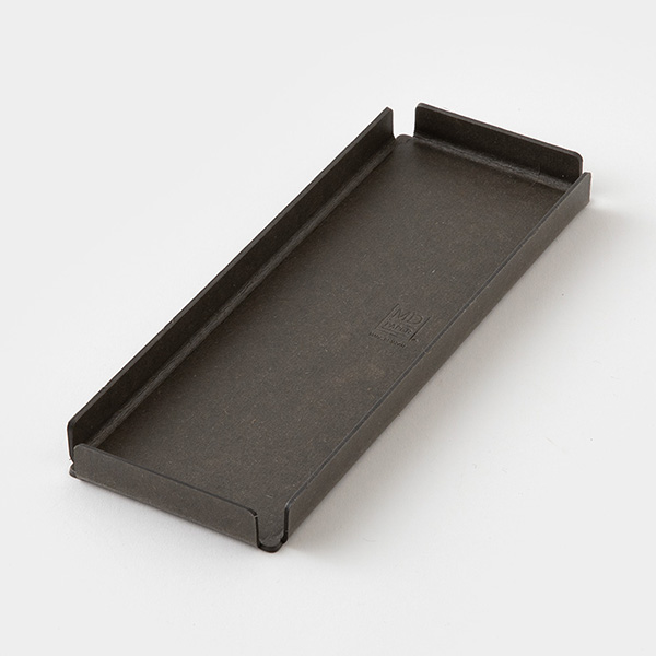 古紙とフレッシュパルプを原料とした、特殊紙「パスコ」で作られたペントレーです。デスクの上で『MDノート』や『MDペーパートレーパスコ』と一緒にお使いください。