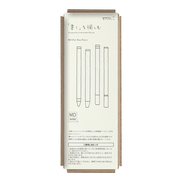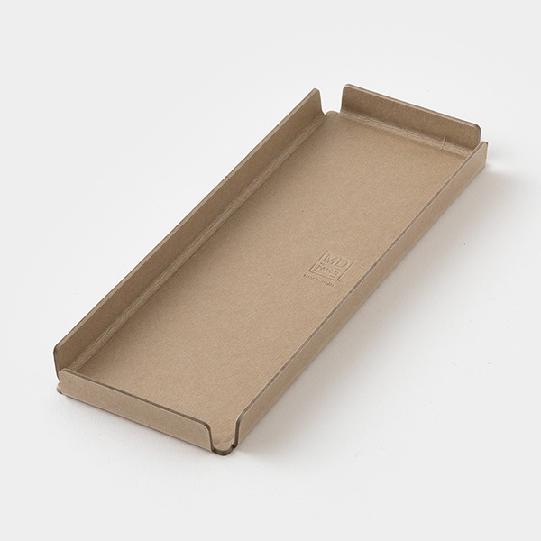 古紙とフレッシュパルプを原料とした、特殊紙「パスコ」で作られたペントレーです。デスクの上で『MDノート』や『MDペーパートレーパスコ』と一緒にお使いください。