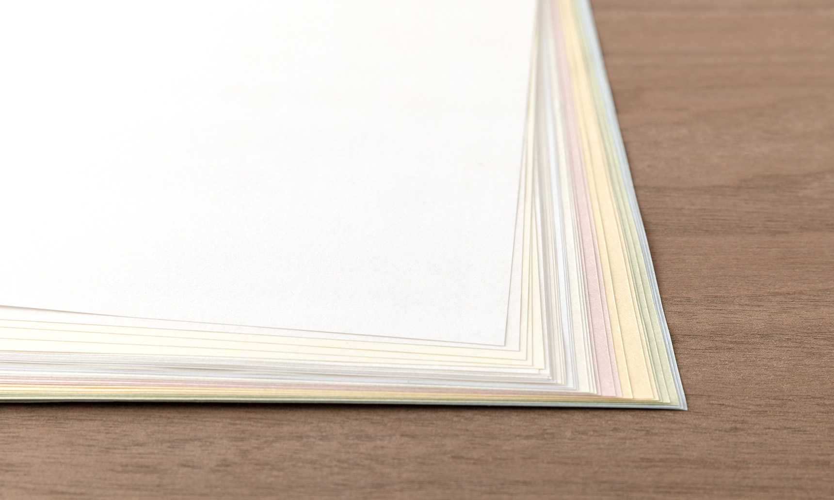 紙を手にしたときに指先から伝わる手触り、心地よく使える滑らかさ、ペンを走らせたときの微かな手ごたえ、感性に訴える色や質感…