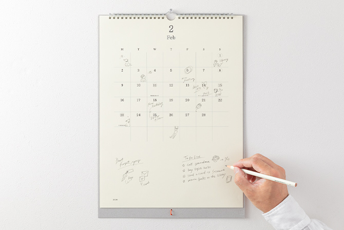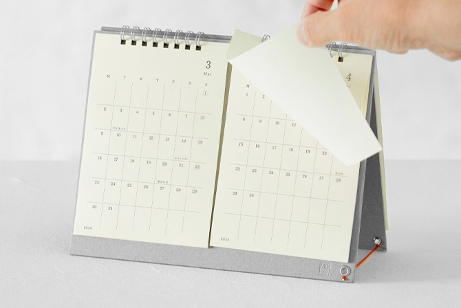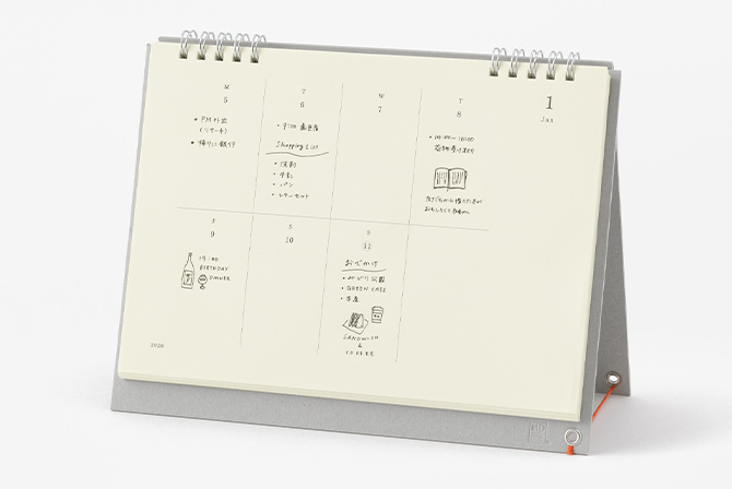 書くことにこだわる人のためのカレンダー。たっぷりの余白に予定やアイデアを書き込めます。『MDノートダイアリー』と併用しやすい月曜始まりとなっています。