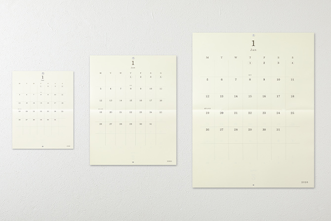 「MD用紙」厚口を使用した、壁掛けカレンダー3サイズ